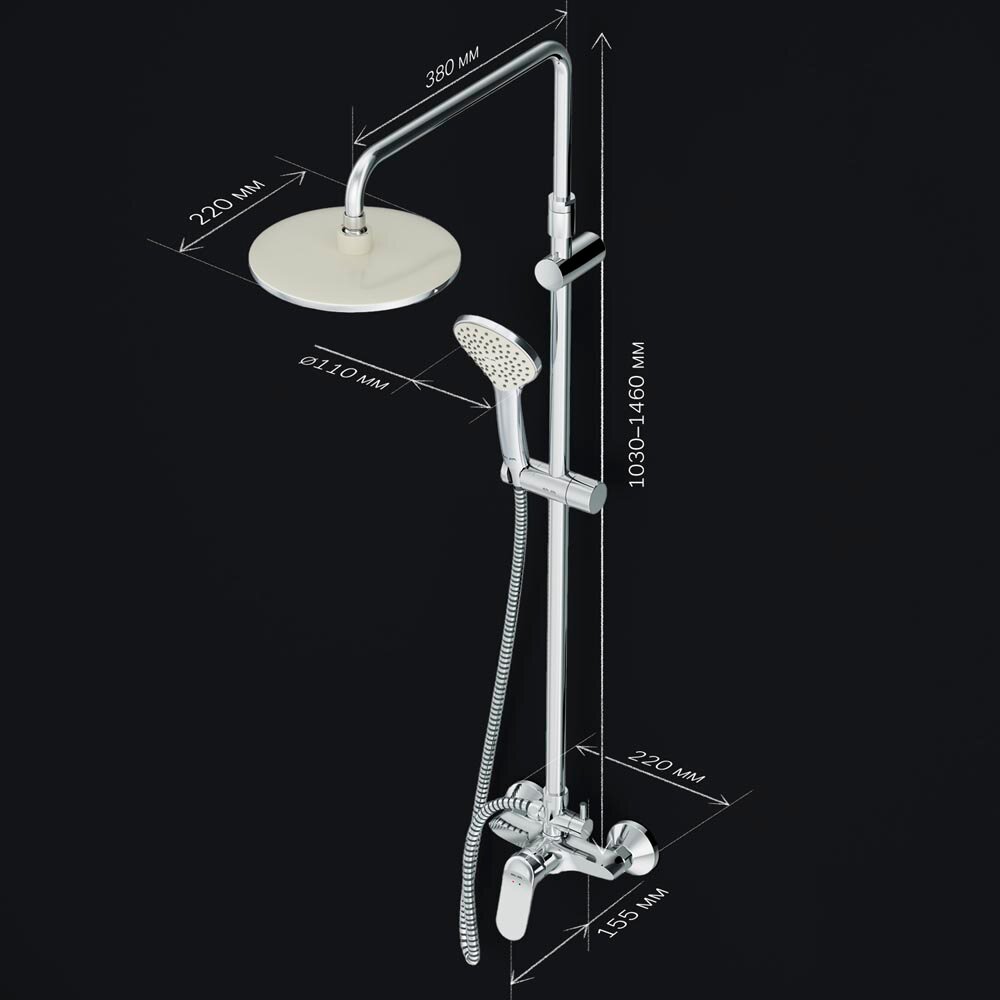 Душ.система,набор:см-ль д/душа с переключателем AM.PM Sunny F0785C800,верхний душ d220 мм, ручной душ 110 интересное: