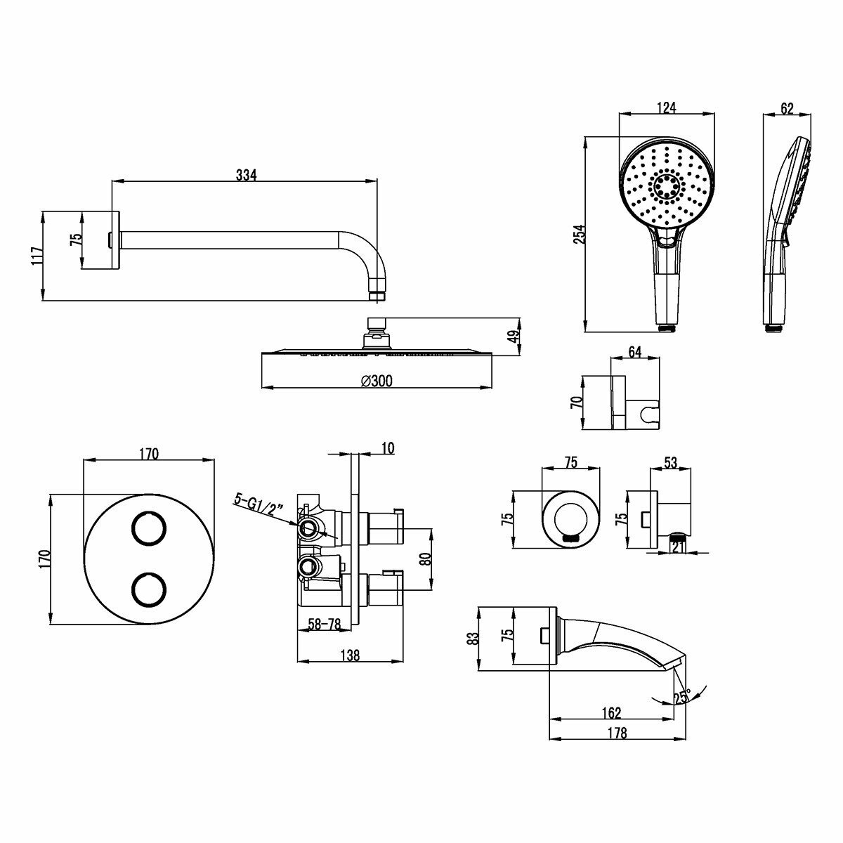 Bronze de Luxe Душевой комплект Bronze de Luxe Scandi 14582BR с внутренней частью, бронза