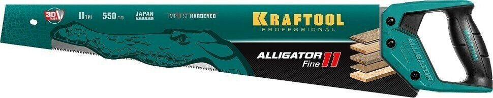Ножовка для точного реза ″Alligator Fine 11″, 550 мм, 11 TPI 3D зуб, KRAFTOOL