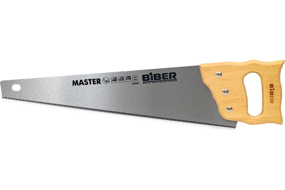 Бибер 85662 Ножовка по дереву 2D заточка средний зуб, дер. рукоятка "Мастер" 450мм (10/60) интересное: