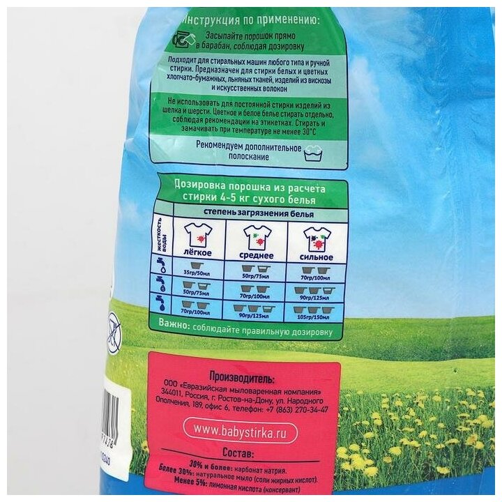 | Минусы: | 1,5кг хватает на месяц (2 взрослых и 5месячный ребенок)- быстрее заканчивается чем если гелем стирать(( |