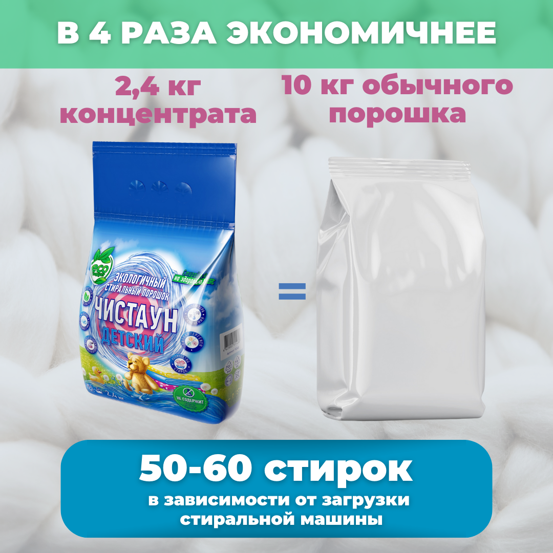 Стиральный порошок Чистаун Детский 2,4 кг без фосфатов и запаха концентрат интересное: