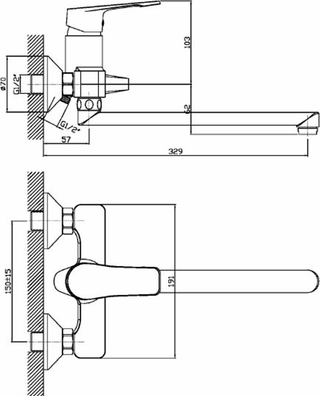 | Длина излива | 329 мм |
