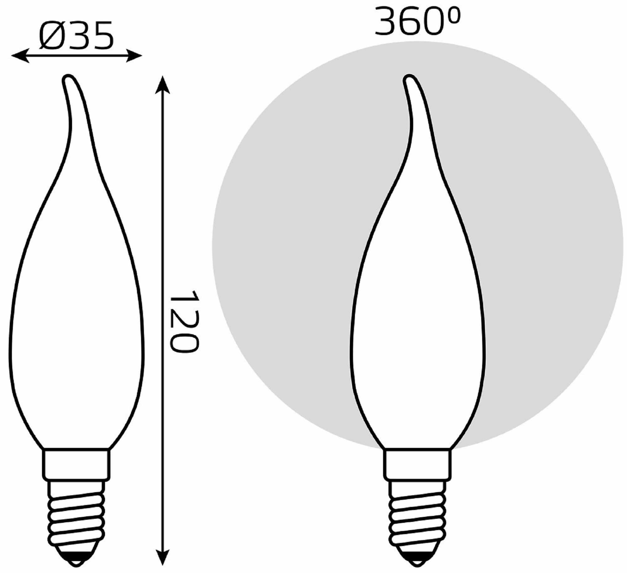 Лампа Gauss Filament, свеча на ветру, 9W, 610lm, 4100К, Е14, milky, LED, 1/10/50 104201209