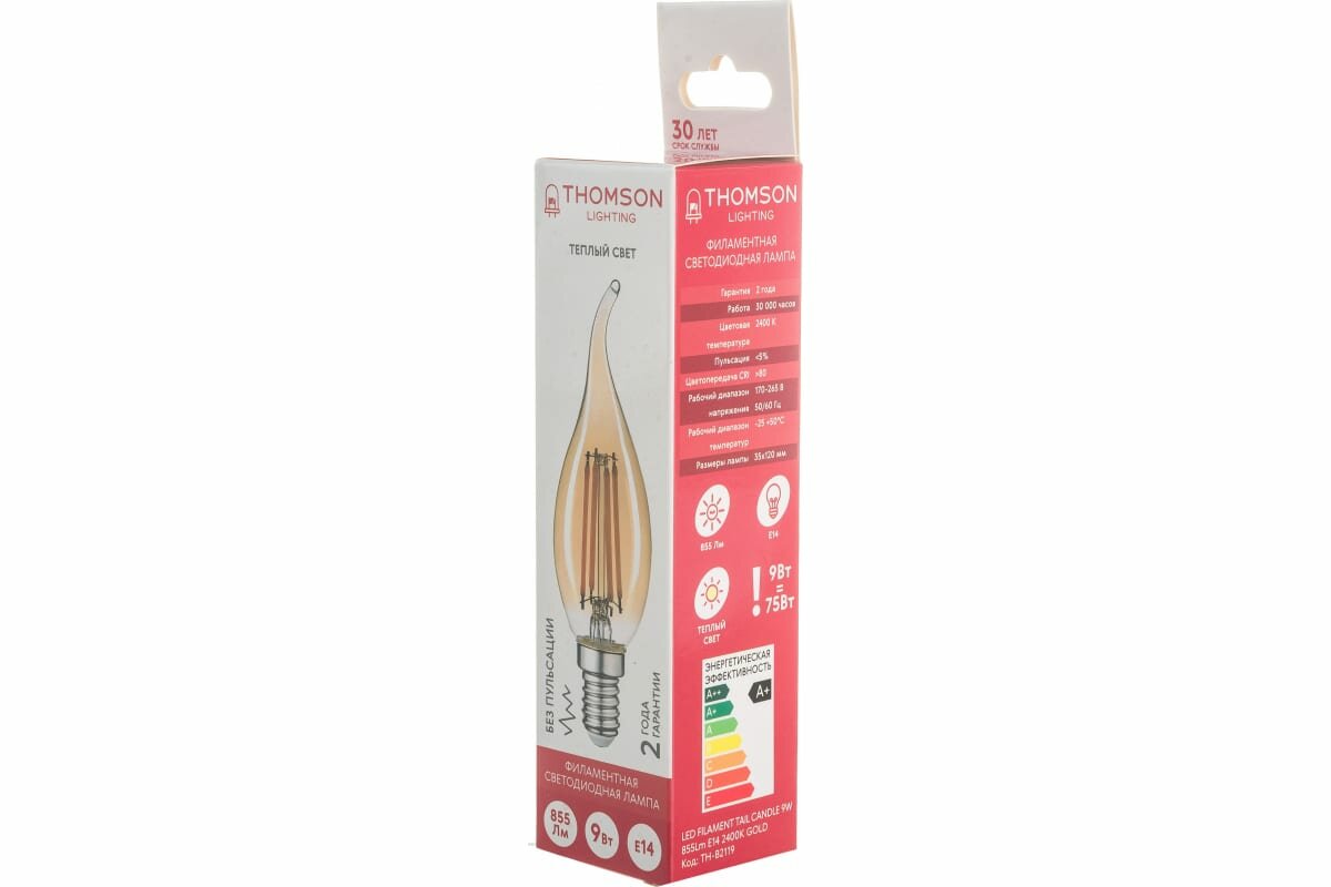Ниже Вы можете прочитать отзывы на Лампа светодиодная филаментная Thomson E14 9W 2400K свеча на ветру прозрачная TH-B2119, ознакомится с подробными характеристиками, посмотреть интересные обзоры и фотографии на Лампа светодиодная филаментная Thomson E14 9W 2400K свеча на ветру прозрачная TH-B2119.