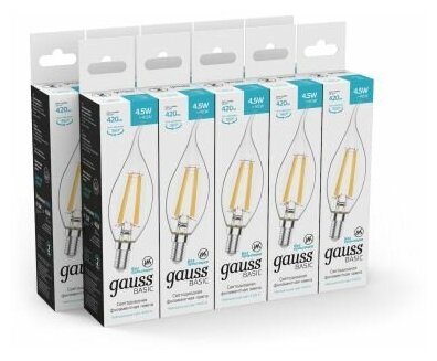 Светодиодная лампа Gauss Basic Filament Свеча 4,5W 420lm 4100К Е14 LED 1/10/50