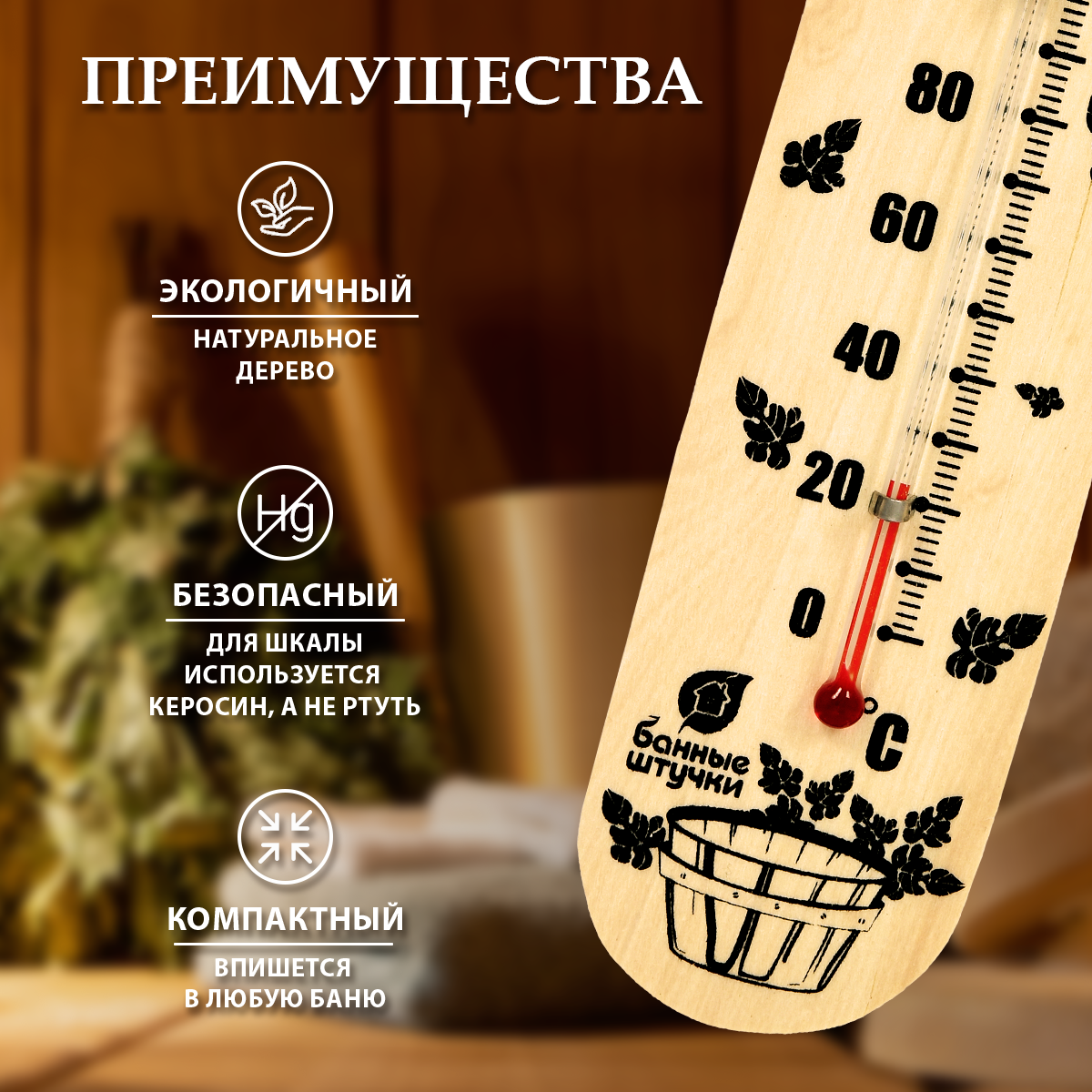 Банные штучки Термометр Банный веник 17,5х4х1 см для бани и сауны / 10 18050
