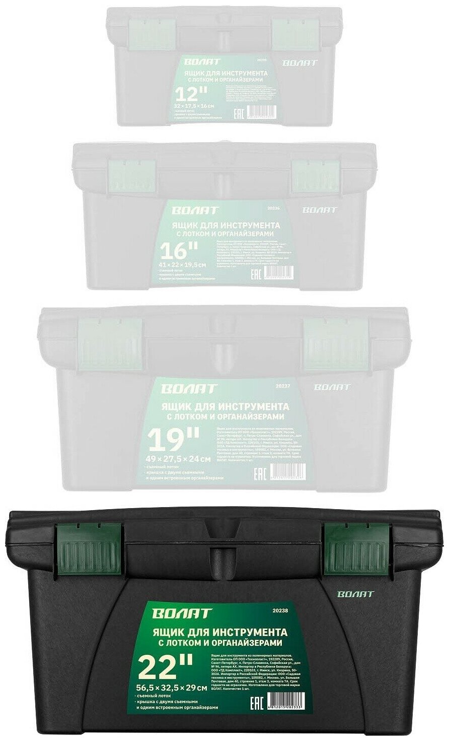 Ящик для инструмента пластмасс. 56,5x32,5x29 см (22") с лотком и органайз. 20238 волат интересное: