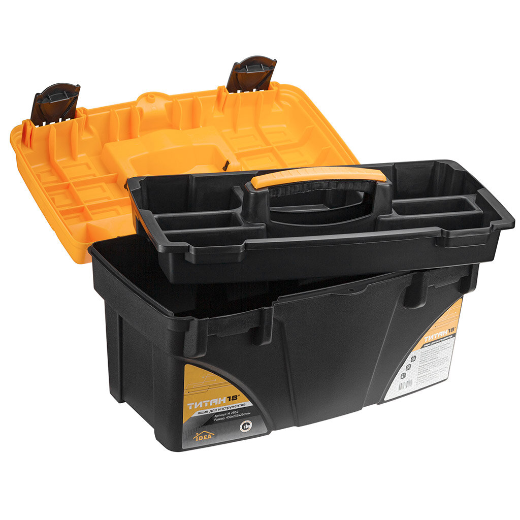 Ящик для инструментов титан 18" черный с желтым IDEA (М-Пластика) M2932