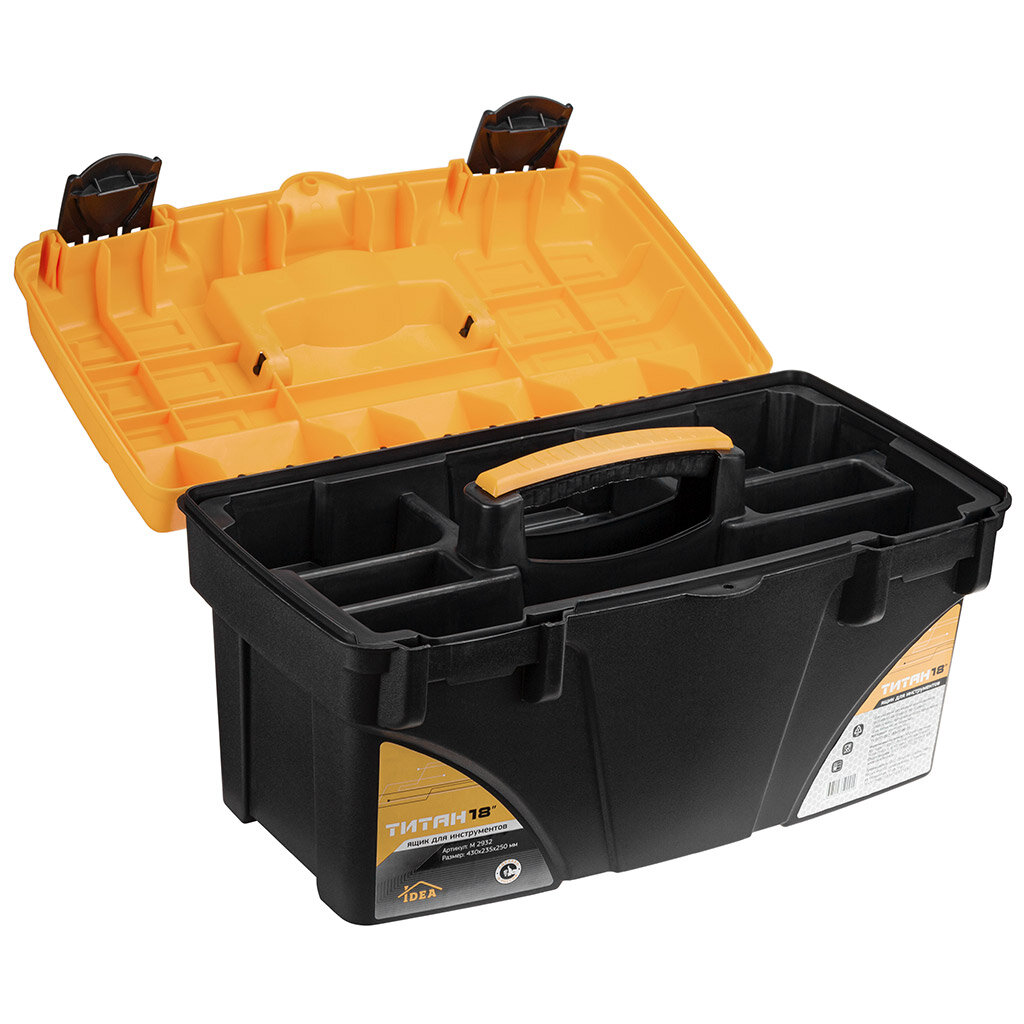 Ящик для инструментов, 18 '', 43х23.5х25 см, пластик, Idea, Титан, пластиковый замок, без секций, М 2932