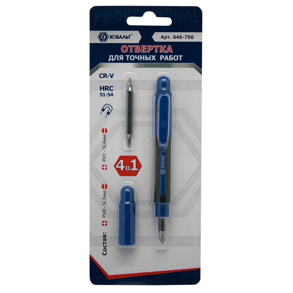 Отверточная рукоятка кобальт 4 в 1 с набором двусторонних бит для точных работ, CR-Vблистер интересное: