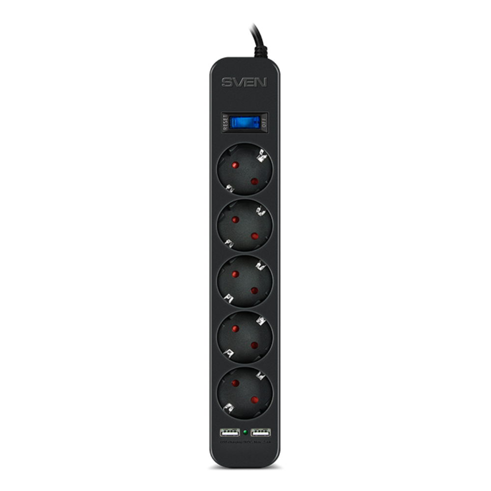 Sven Фильтр Sf-05lu 3.0 м (5 евро розеток,2*USB(2,4А)) , черный, цветная коробка [sv-018849]