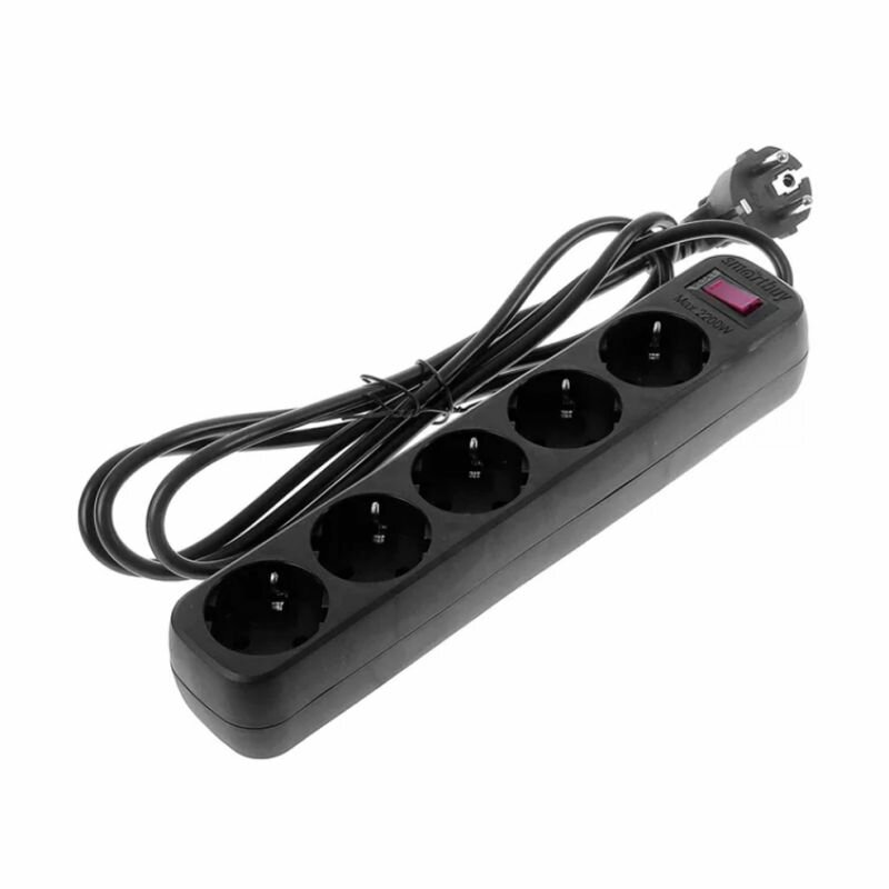 Удлинитель с функцией сетевого фильтра, 10А, 2 200 Вт, 5 розеток, длина 1,8 м, черный, Smartbuy