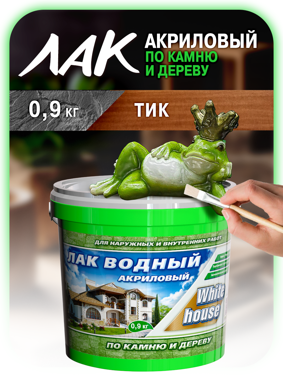 ЛАК водный ПО дереву И камню WHITE HOUSE акриловый Тик 0,9 кг