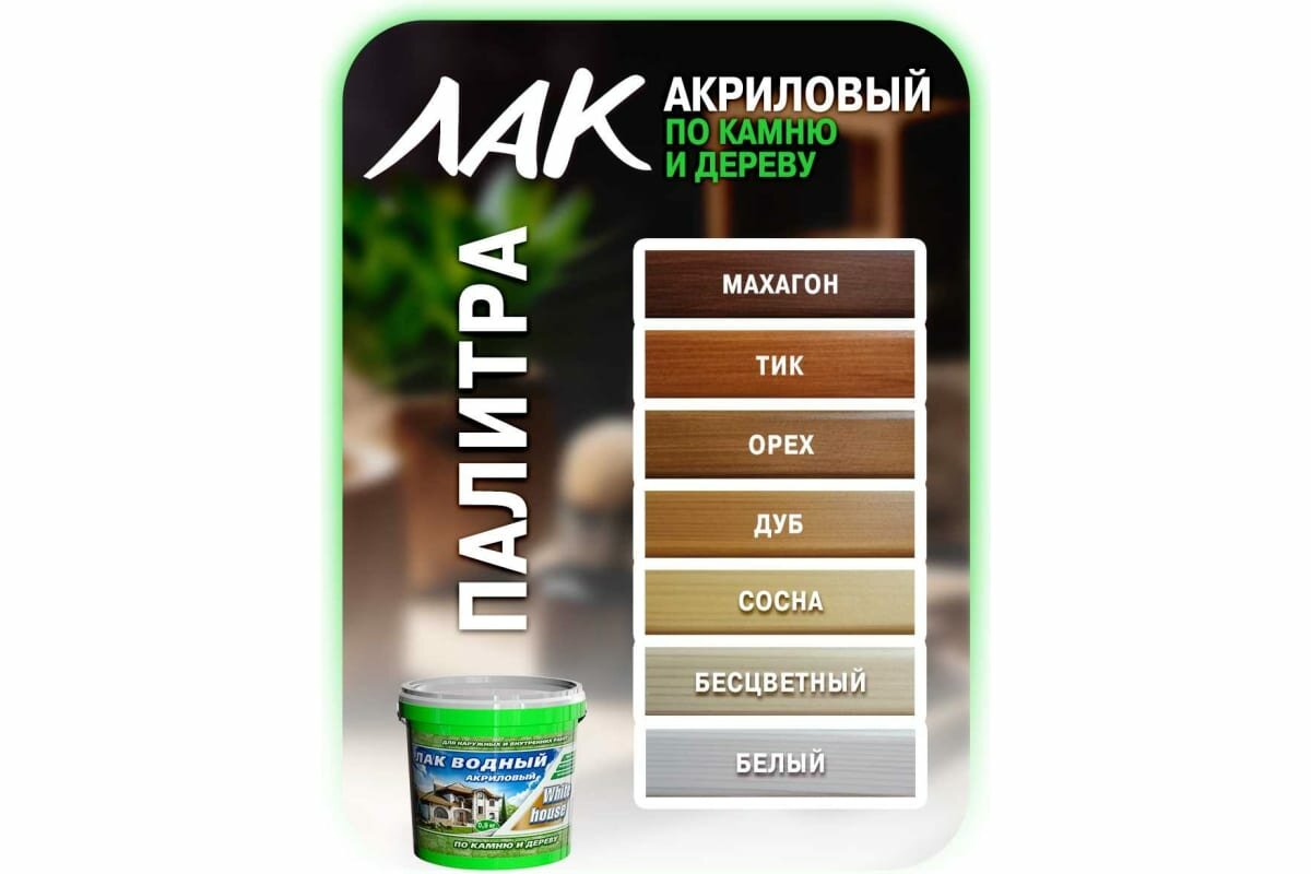 ЛАК водный ПО дереву И камню WHITE HOUSE акриловый Тик 0,9 кг