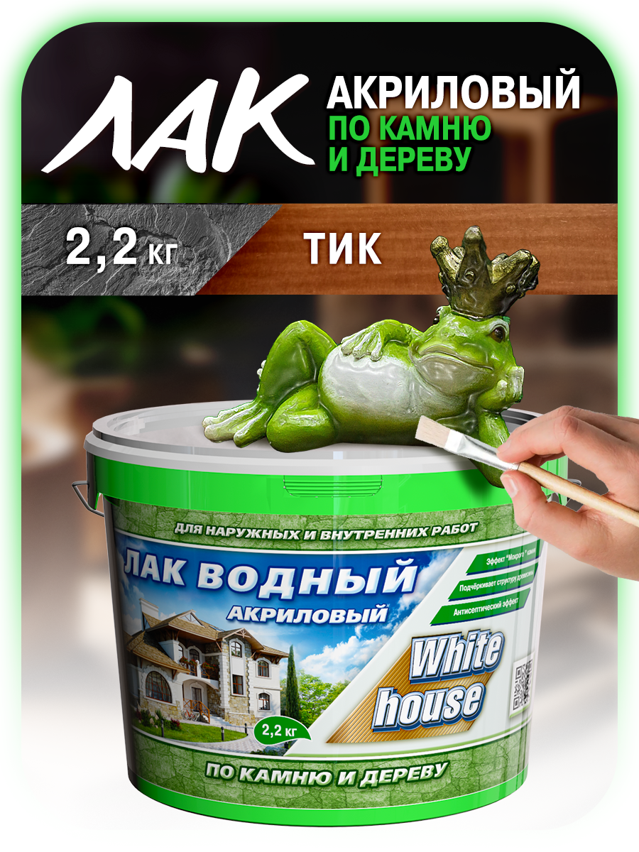 ЛАК водный ПО дереву И камню WHITE HOUSE акриловый Тик 0,9 кг