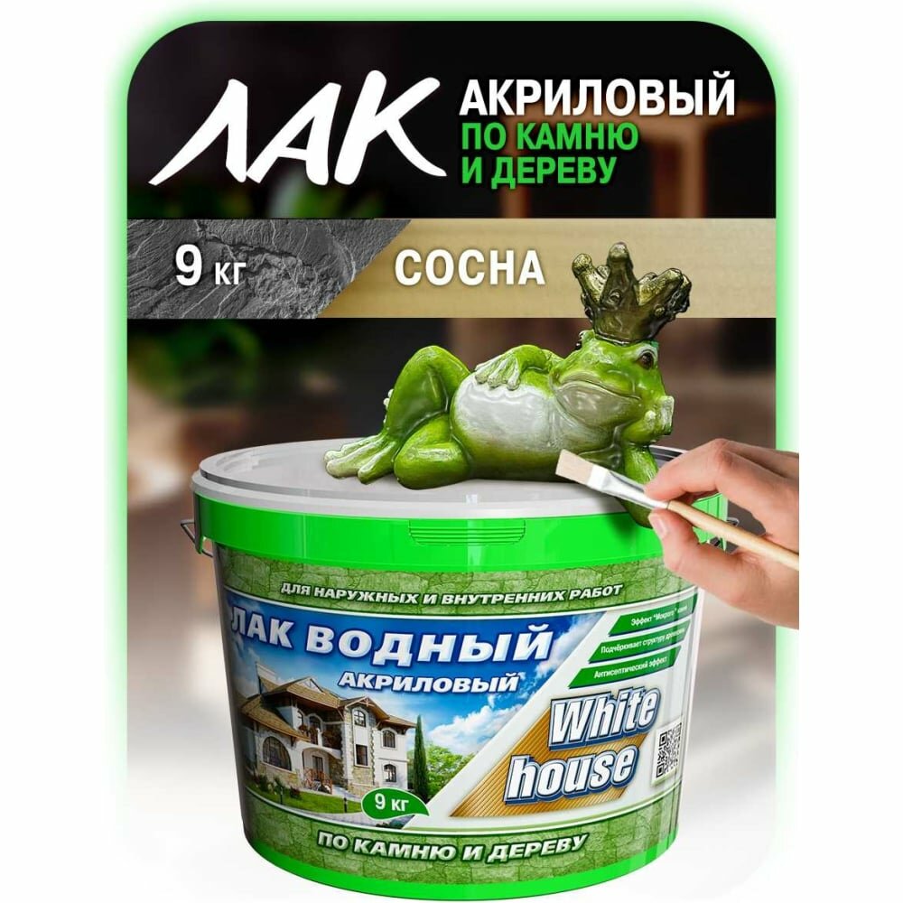 ЛАК водный ПО дереву И камню WHITE HOUSE белый 9 кг