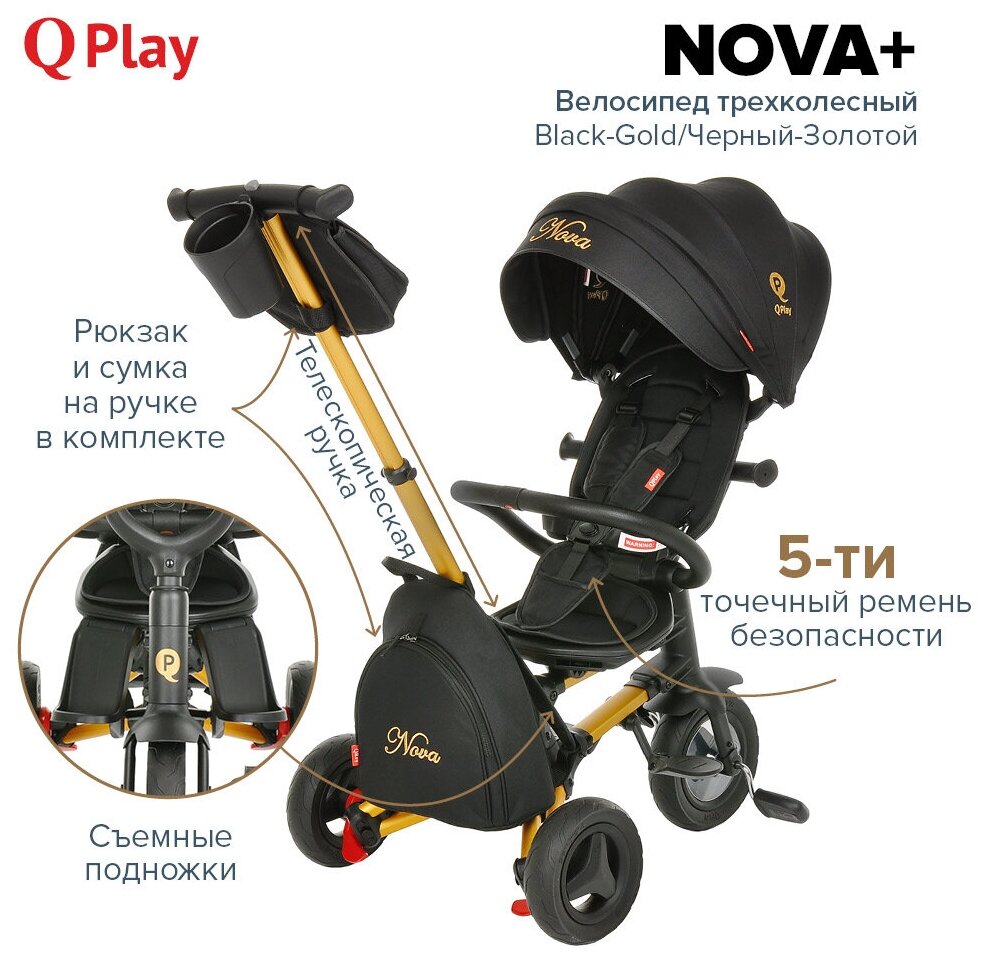 СохранитьТрехколесный складной велосипед QPlay NOVA PLUS Black-Gold Черный-Золотой интересное:
