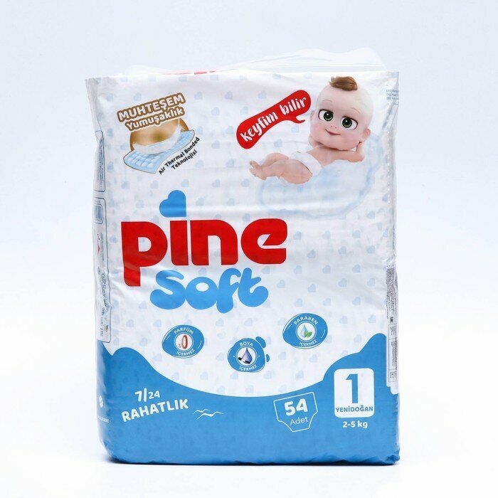 Купить Подгузники детские Pine Soft 1 Newborn (2 - 5 kg), 54 шт