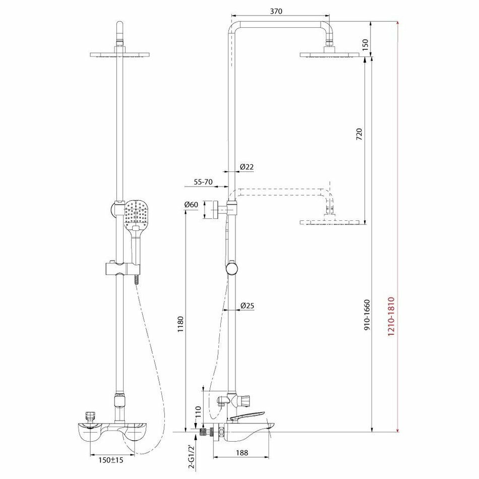 | Дополнительная информация | высота стойки для душа: 1481 мм; длина верхнего душа: 190 мм; ширина верхнего душа: 240 мм |