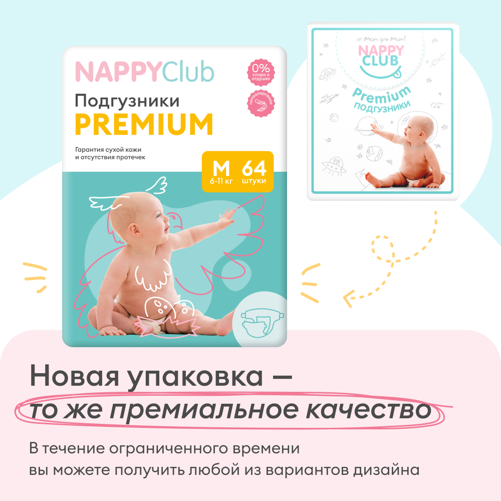 Подгузники NappyClub Premium M, 6-11 кг, 64 шт. интересное: