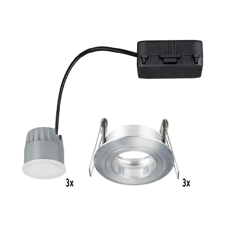 Купить Светильник встраиваемый Paulmann Premium Line D79мм 7Вт 380Лм 2700К LED IP44 Coin 230В Алюминий тертый Набор 3 штуки Димм 92825