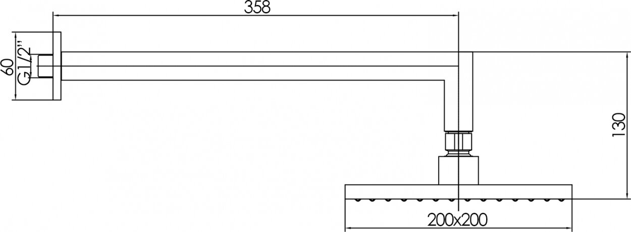 Верхний душ с держателем 102145031EX TIERA квадратный 200x200 мм