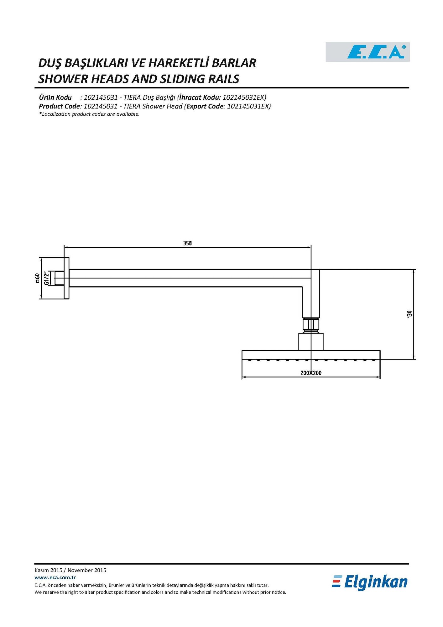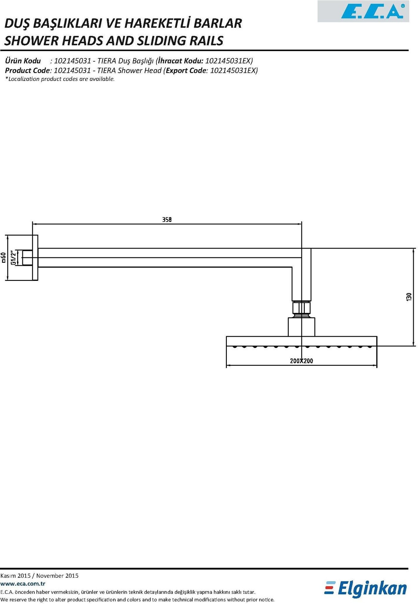 Верхний душ E.C.A. Tiera (102145031EX)