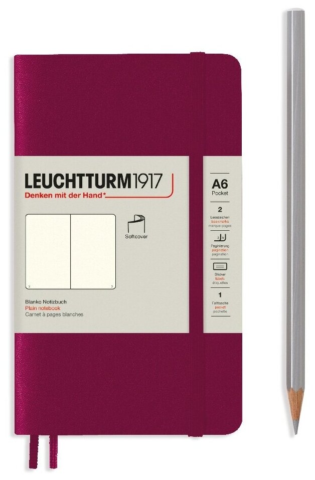 Блокнот Leuchtturm Pocket A6 61л без линовки мягкая обложка Красный Портвейн интересное:
