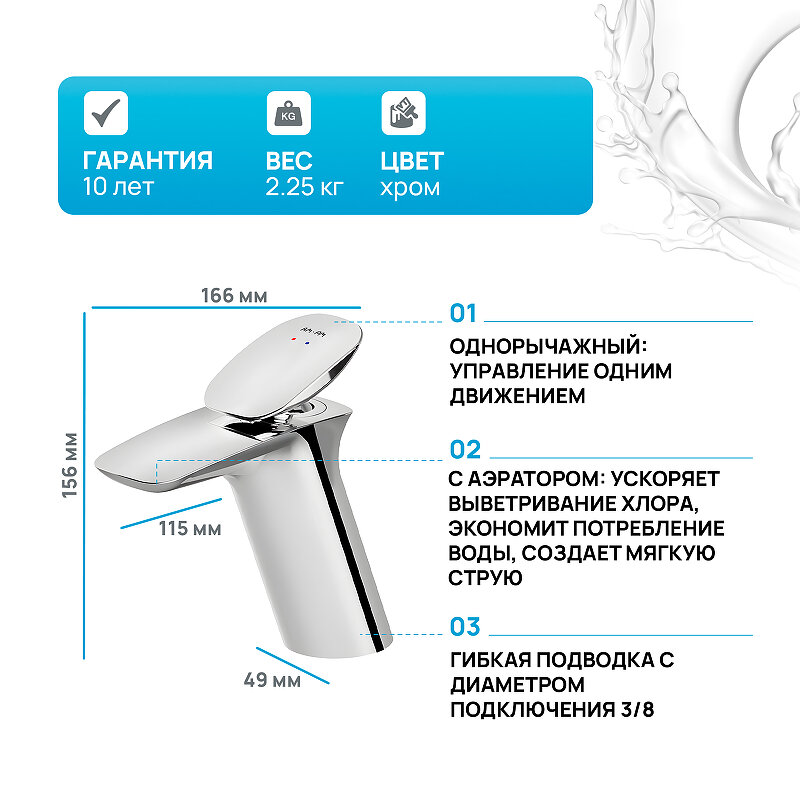 | Плюсы: | Джойстиковый картридж, удобно для высокой раковины, ручка органической формы, хромовое надёжное покрытие, выдвижной излив, наклон струи регулируется, 10 лет заявленный срок службы, что значительно дольше дешёвых смесителей |