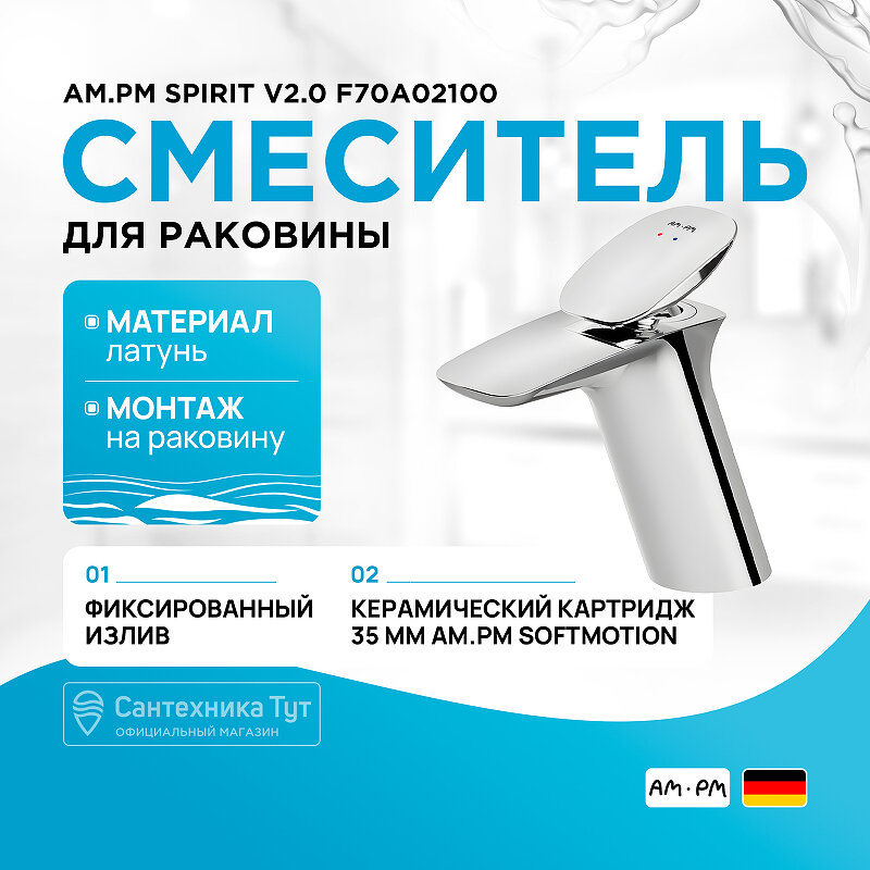 Смеситель AM.PM "Spirit V2.0" F70A02100, латунь, джойстик, хром