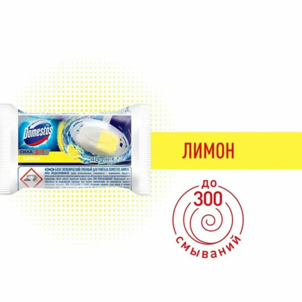 Купить Domestos Лимон 3 в 1, сменный гигиенический блок для очищения унитаза, антиналет, 40 гр