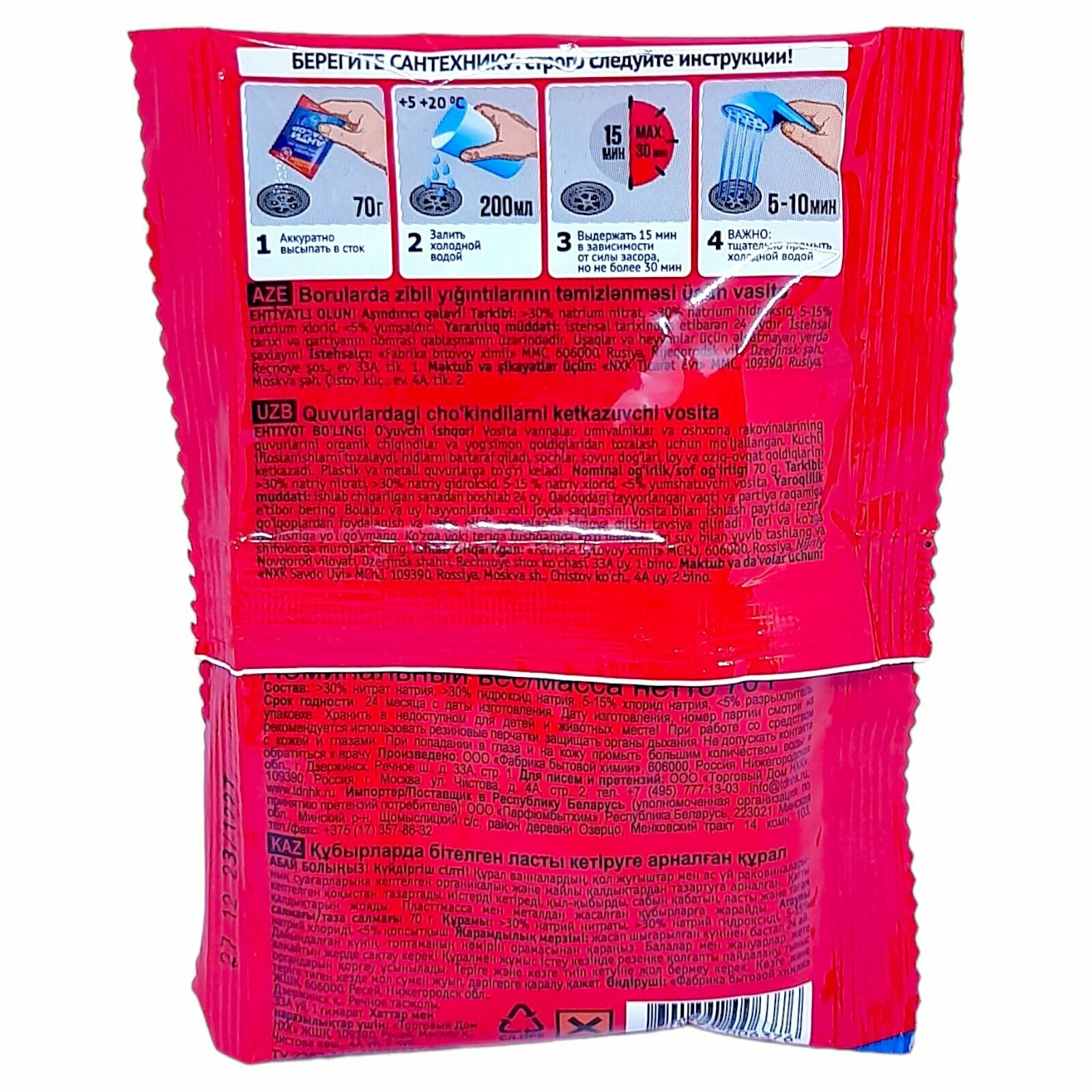 Антизасор гранулированное средство для удаления засора в трубах