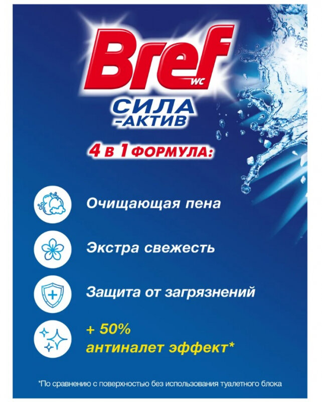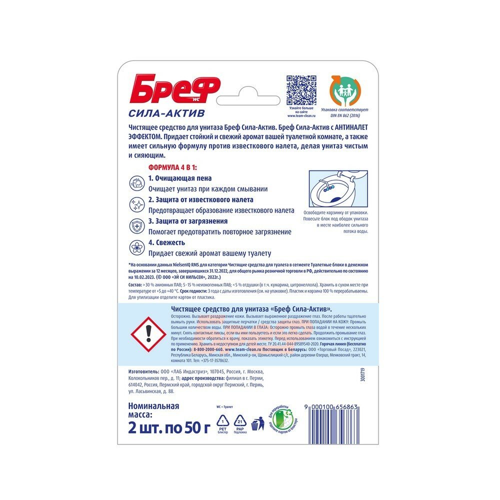 Гигиенический блок для унитаза Bref "Сила-Актив. Лимонная свежесть", 2x50г, блистер (9000100656832)