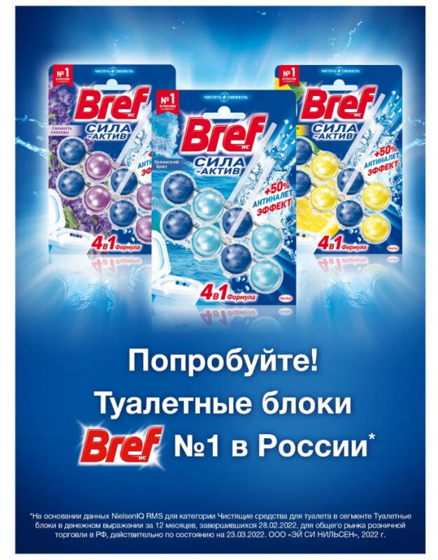 Ниже Вы можете прочитать отзывы на Чистящее средство для унитаза Bref Сила-Актив Океанский Бриз 2х50 г, ознакомится с подробными характеристиками, посмотреть интересные обзоры и фотографии на Чистящее средство для унитаза Bref Сила-Актив Океанский Бриз 2х50 г.