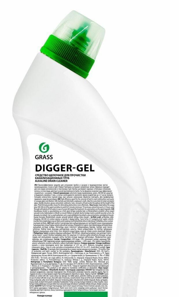 Grass Средство щелочное DIGGER-GEL для прочистки канализационных труб, 1000 мл