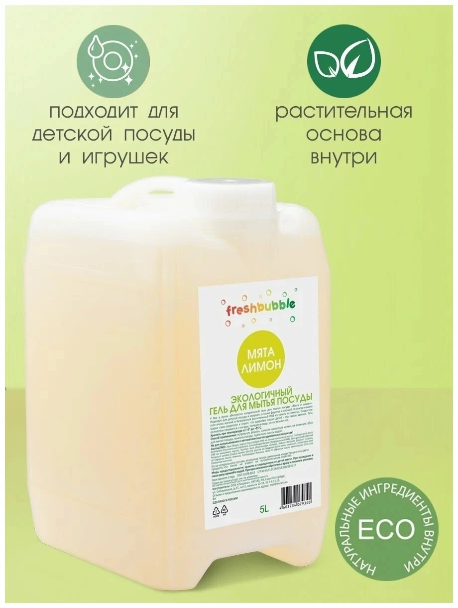СохранитьFreshbubble Гель для мытья посуды "Мята и Лимон", 5000 мл интересное: