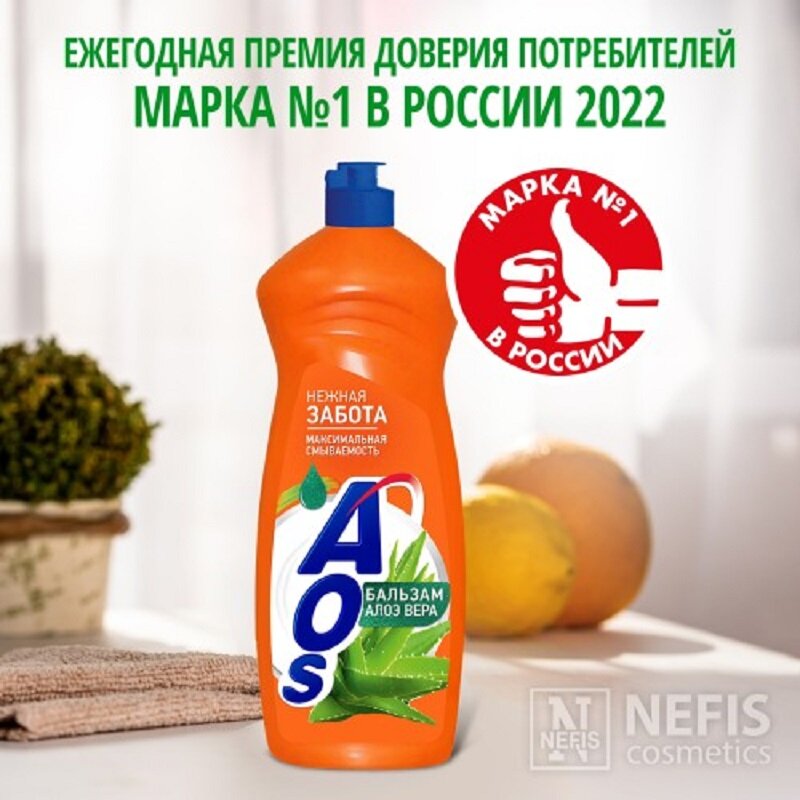 Средство для мытья посуды AOS Бальзам Алоэ вера 900мл. , 1 шт.