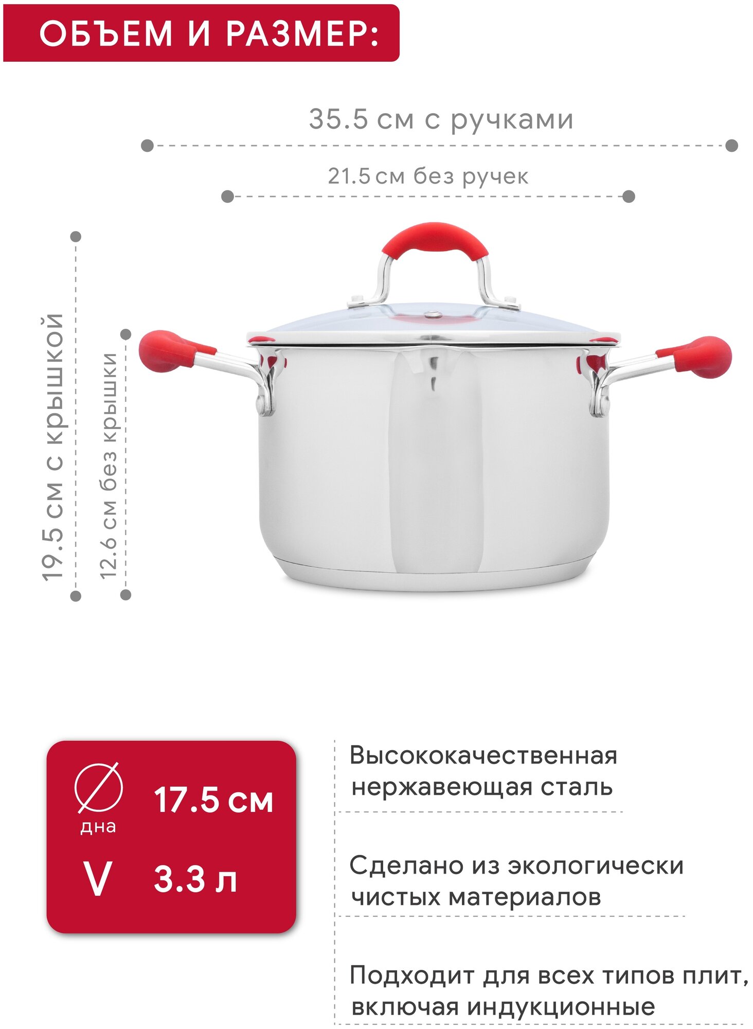 Набор кастрюль ATTRIBUTE из нержавеющей стали для индукционных плит / кастрюля с крышкой 3.4 л + ковш с крышкой 1.7 л
