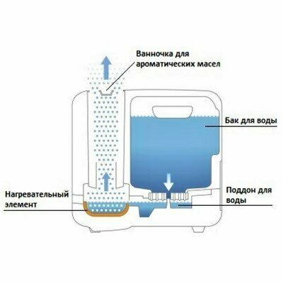 | Плюсы: | Быстро увлажняет воздух, есть отсек для ароматических масел, не шумит, не требует очень высокого качества воды. |