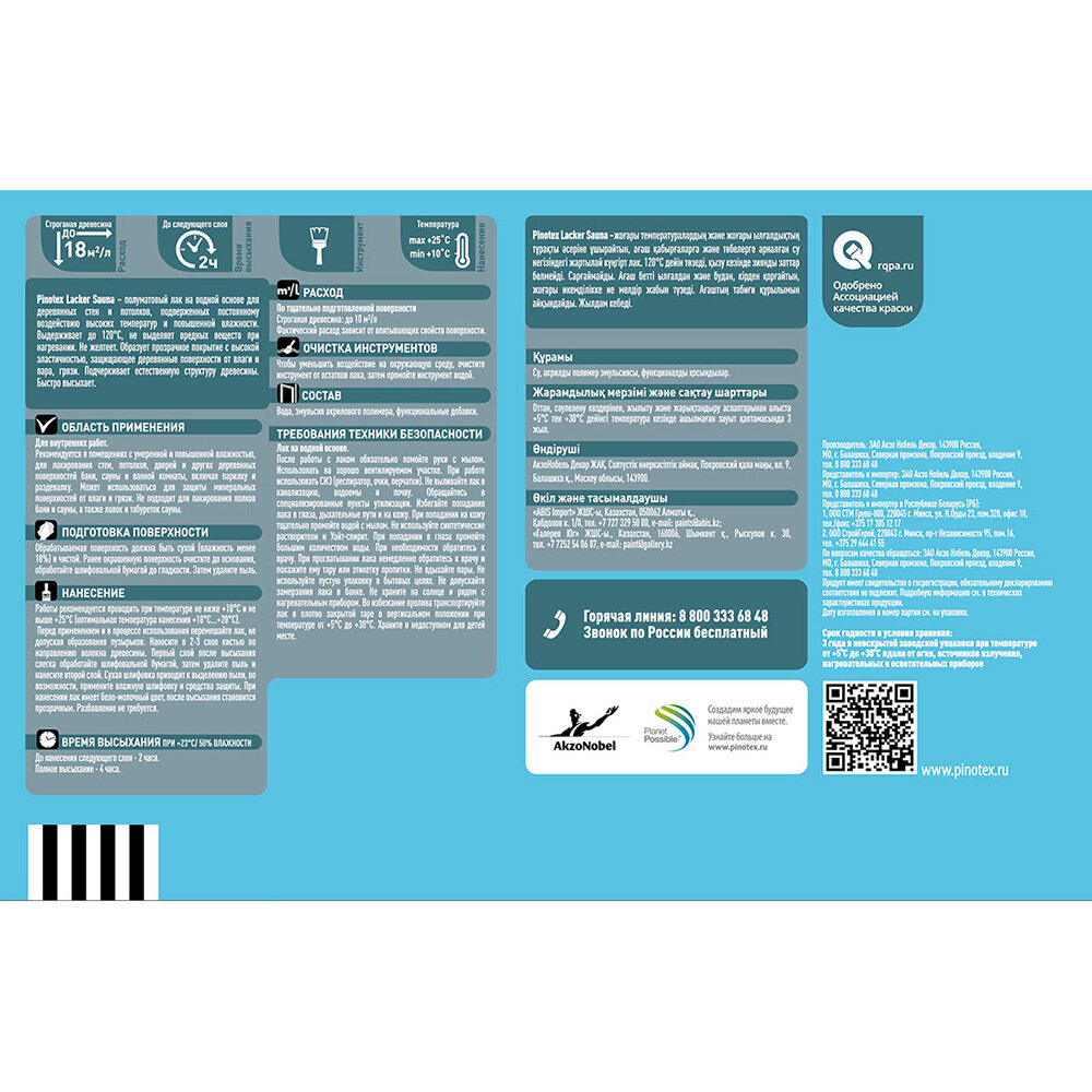 Пинотекс лак для бани и сауны полуматовый (1л) / PINOTEX Lacker Sauna 20 термостойкий водорастворимый лак для бань и саун полуматовый (1л)