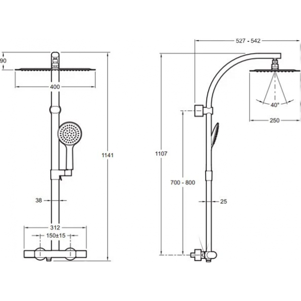 | Дополнительная информация | высота стойки для душа: 1141 мм; диаметр душевой лейки: 120 мм; длина верхнего душа: 250 мм; ширина верхнего душа: 400 мм |