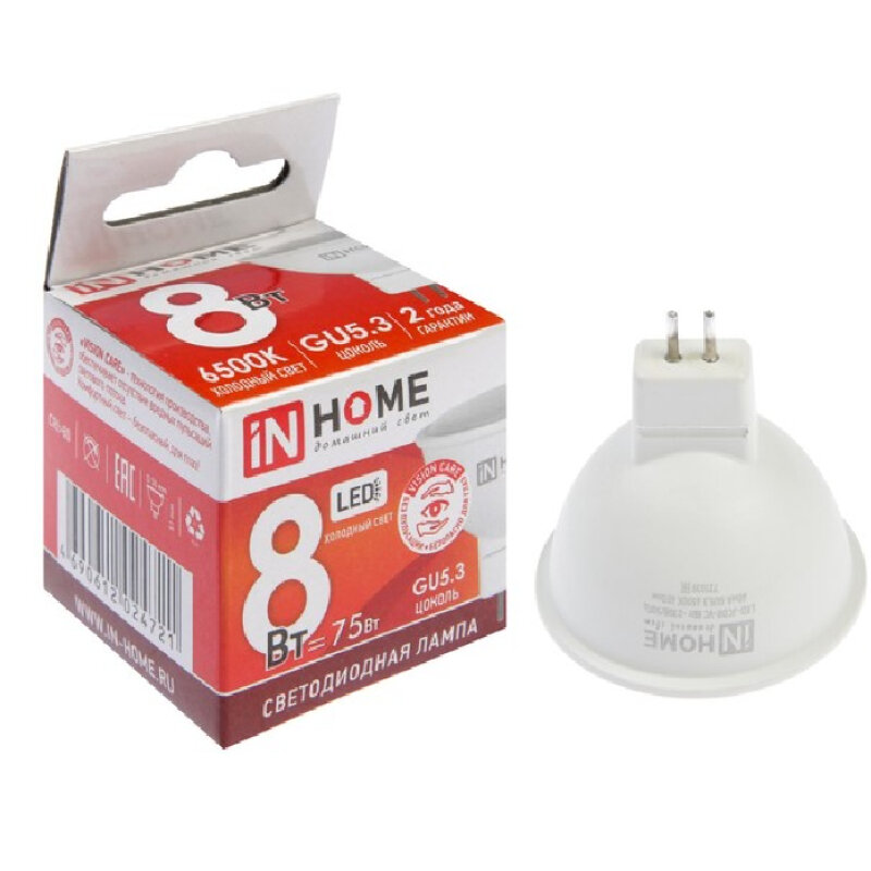 Светодиодная лампа IN HOME LED-JCDR-VC 8Вт 230В GU5.3 6500К 600Лм 4690612024721