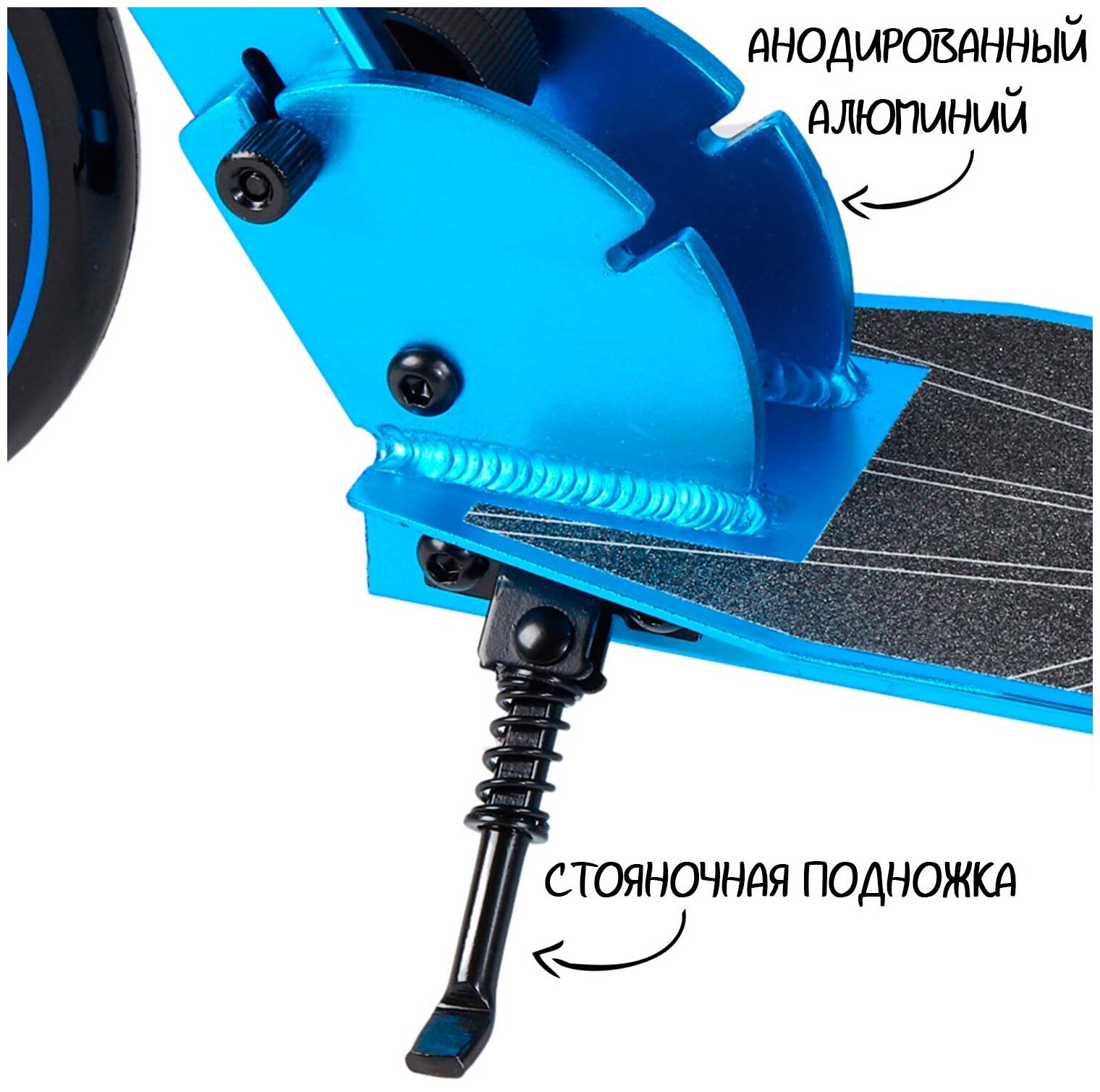 Cамокат двухколесный CITY-RIDE, дека: алюминий анодированный, сталь, колеса PU 200/200, подножка, цвет синий