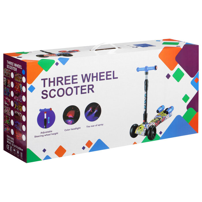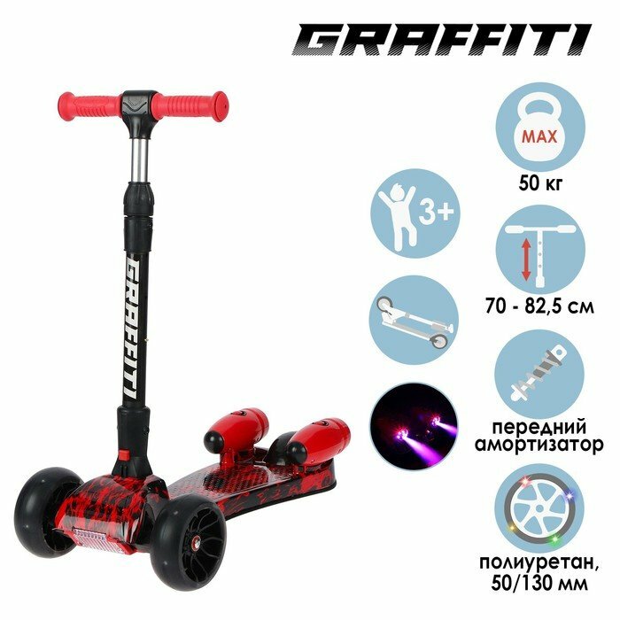 GRAFFITI Самокат складной, колёса световые PU d=13/5 см, музыка, эффект дыма, ABEC 7, цвет космос