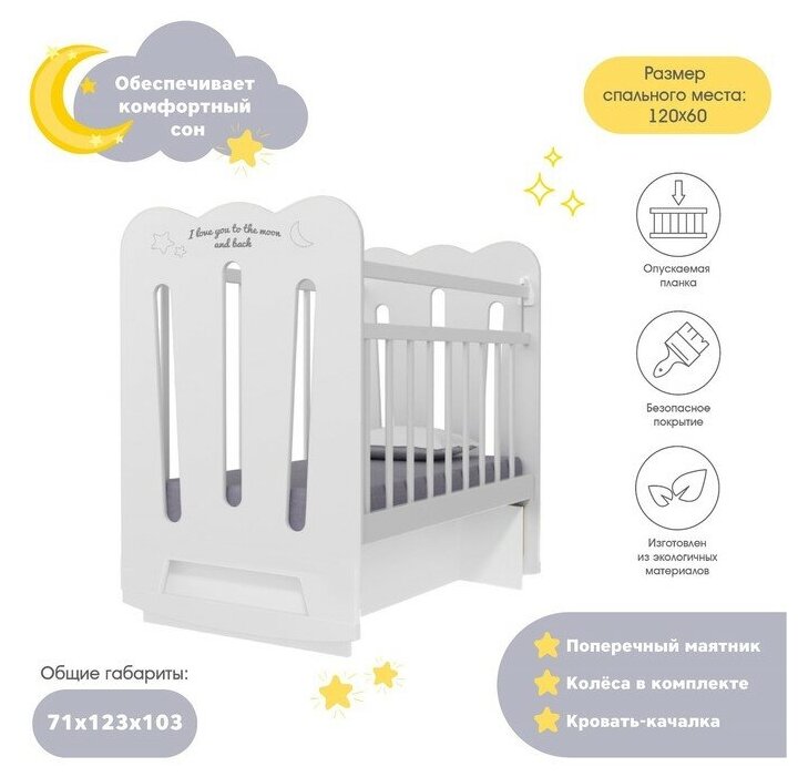 Купить Кровать детская Desire колесо-качалка с маятником (белый) (1200х600) 4790597