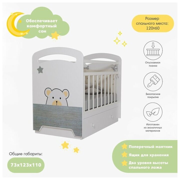 Кровать детская Birba маятник с ящиком (белый) (1200х600) 4790553 интересное: