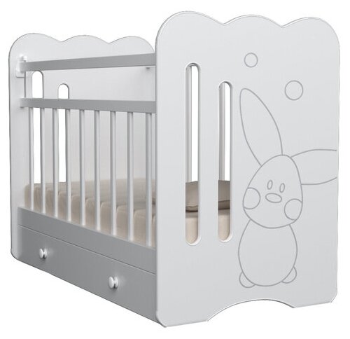 Купить Кровать детская Sweet Rabbit маятник с ящиком (белый) ( 1200х600)