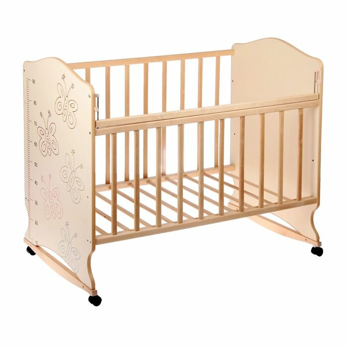 ВДК Детская кроватка «Морозко. Бабочки» с ростомером, на колёсах или качалке, цвет бежевый/берёза интересное: