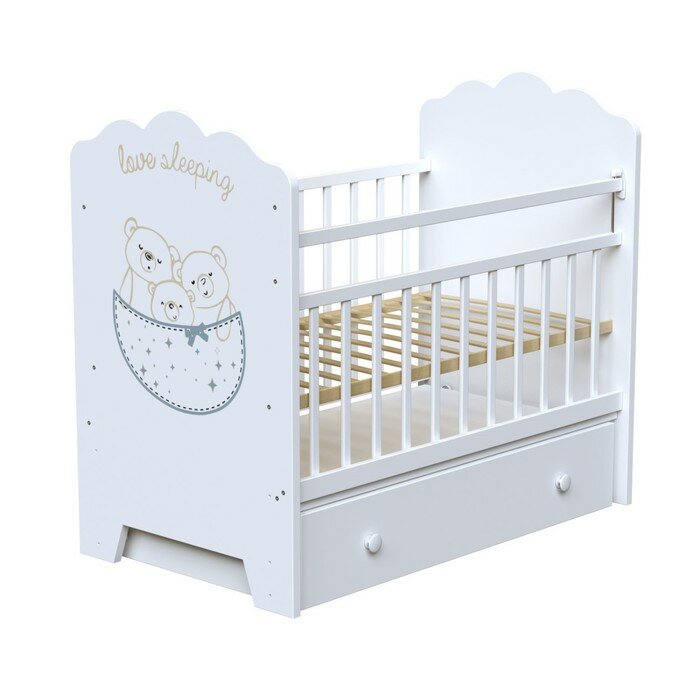 ВДК Кровать детская Love Sleeping маятник с ящиком (белый) (1200х600) интересное:
